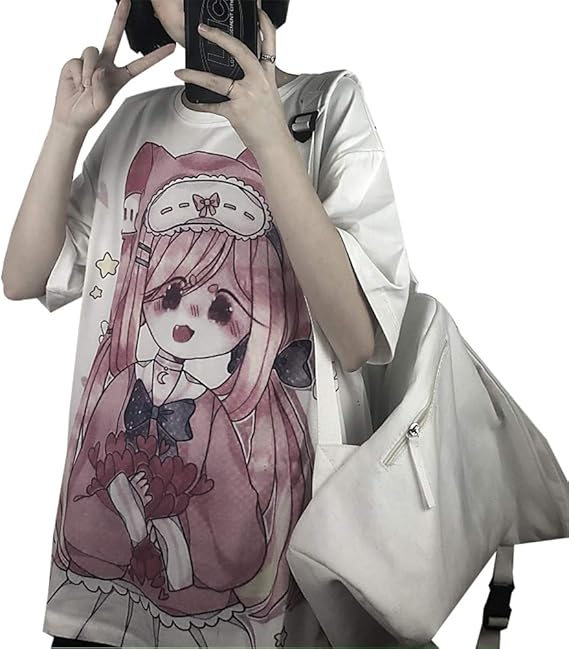 Amazon | 韓国 ファッション レディース tシャツ 半袖 病みかわいい 服 原宿系 チュニック 萌え プリント オシャレ トップス 大きいサイズ | Tシャツ・カットソー 通販